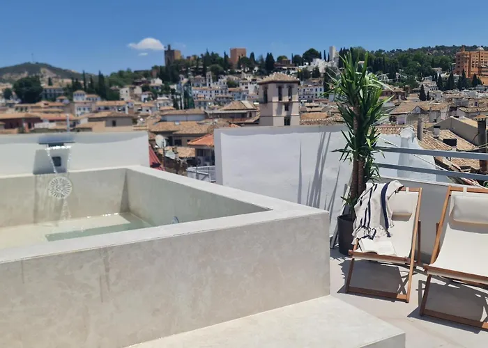 Die 2-Zimmer-Ferienwohnung Navas 402 Atico & Pool Alhambra Views Granada befindet sich im Zentrum von Granada und ist zudem 14 Fußminuten vom Carmen de los Mártires entfernt. Das 130 m² große Apartment bietet Zugang zu einem Dachpool und liegt ziemlich nah an der Calle Navas.